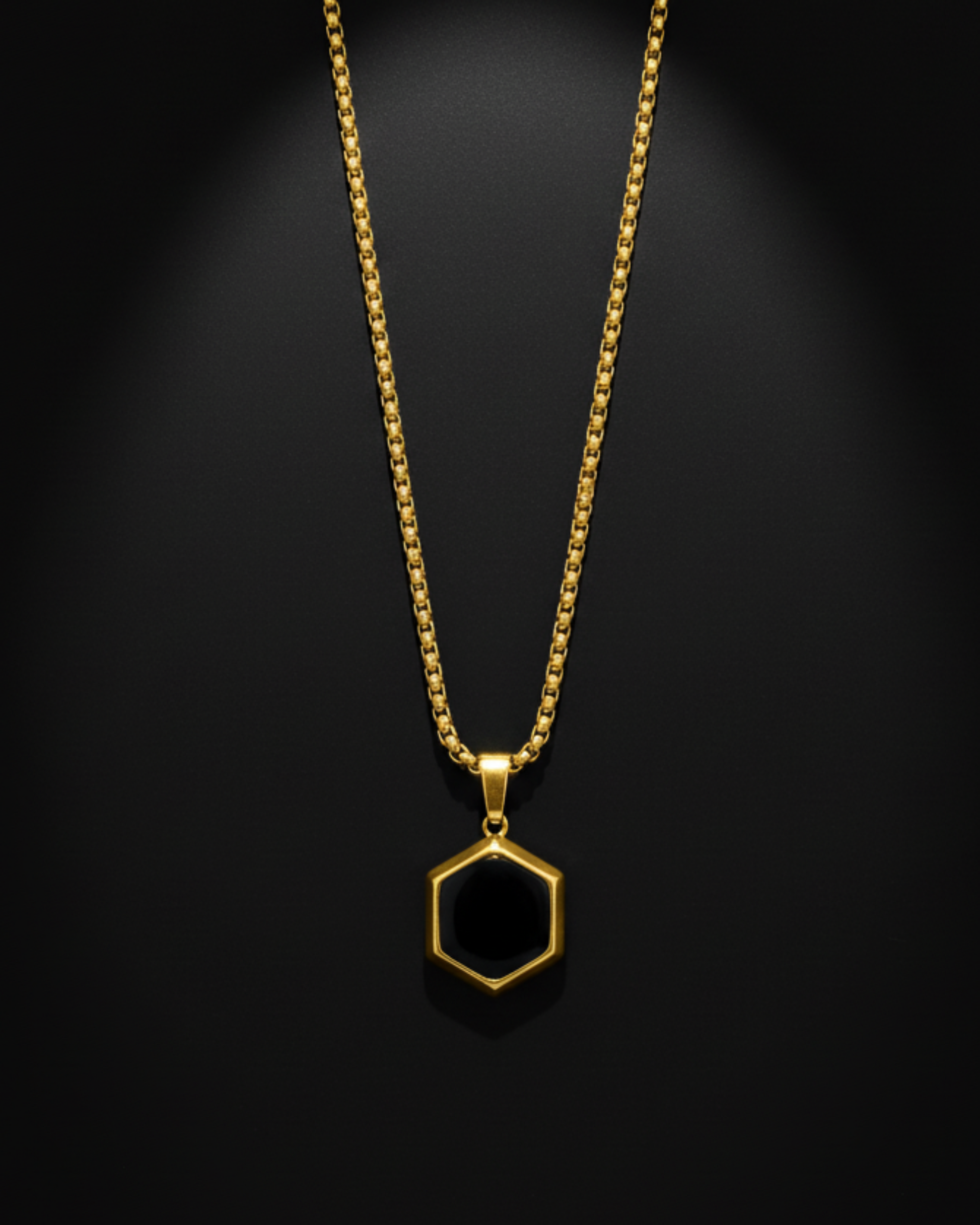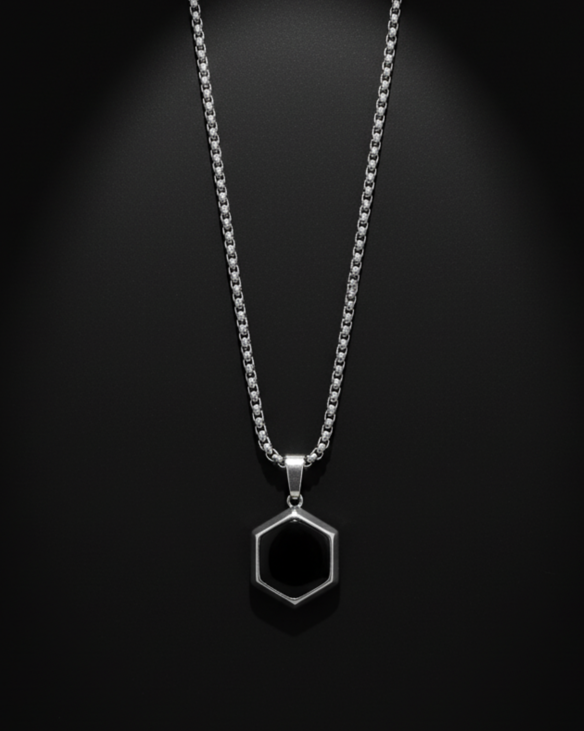 Legends say the stone absorbs fear, locking it away within its hexagonal walls, leaving only clarity, courage, and a sharpened mind. When worn, the pendant sits with a quiet gravity — not loud, not boastful, but undeniably powerful.